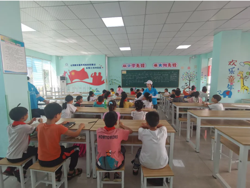 晚些时候,两只实践队伍还一起在当地的儿童活动中心教当地留守儿童学唱红歌,和当地的留守儿童一起做游戏。最后一整天的实践活动在孩子们的欢声笑语以及嘹亮的红歌声中落下帷幕。