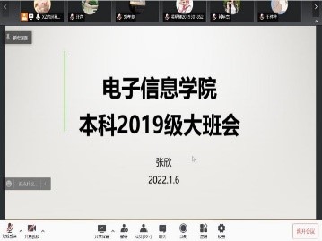 2019级本科生在线上召开了大班会。本次会议主要围绕疫情期间线上教学相关事宜和学生志愿服务分享交流展开。2019级全体学生参加会议,辅导员张欣老师主持。