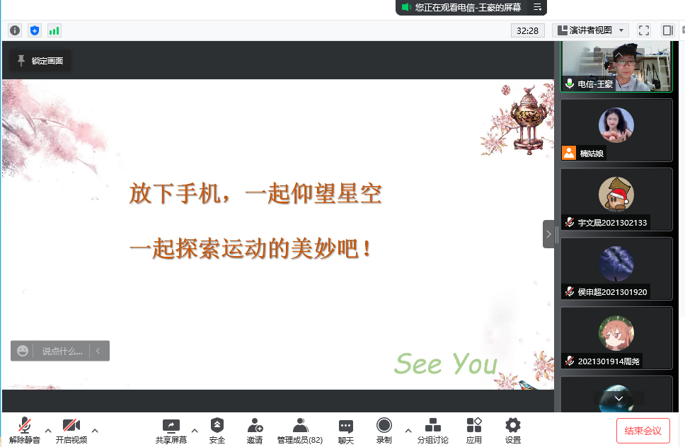 2020级本科生王豪。在本期微拓活动中,王豪详细介绍了乒乓球运动的有关知识以及乒乓球技术提升方法,还结合自身经历,分享了在比赛中的收获。同时,王豪还呼吁大家积极参与乒乓球等体育运动,鼓励同学们寻找自己喜爱的运动和锻炼方式,与会同学表现出了极大兴趣。