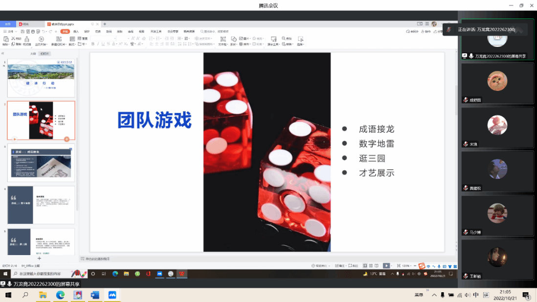 四班通过线上视频的方式,加强同学们的参与感,增进同学们的友情。五班班委经过协商列举了包括眼色游戏、数字地雷等在内的多个游戏供大家投票,最后你画我猜、谁是卧底、荣耀峡谷等游戏以高票胜出。借助游戏APP、游戏小程序等工具同步进行,最大程度保证每位同学参与进来、增进友谊。