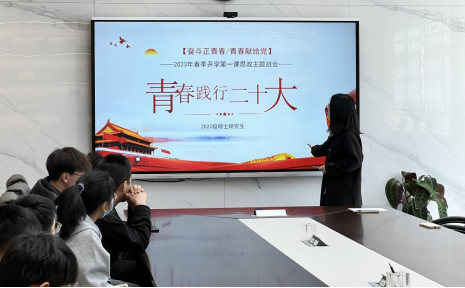 为引导学生认真学习党的二十大精神,加强研究生干部队伍建设,提升学生干部理论素养,2023年3月15日,2022级硕士研究生以“青春践行二十大”为主题,在学院楼159会议室召开了新学期第一次思政主题班委会,辅导员许茜与兼职辅导员陈爽出席本次会议。
