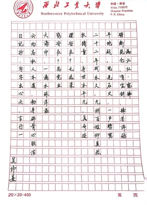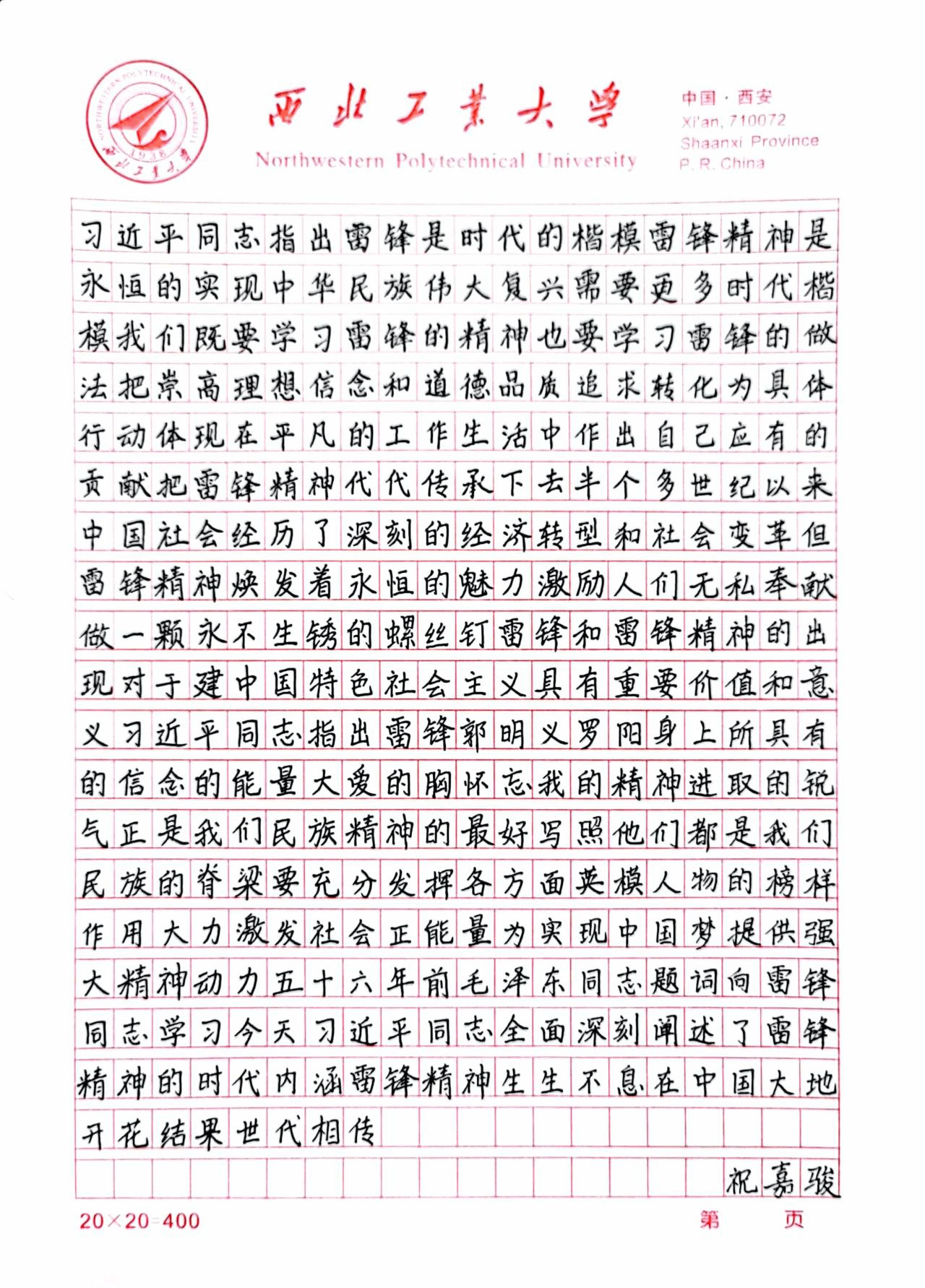 在3月26日召开的党日活动中,马琳雅同志首先带领全体党员共同观看了《雷锋是怎样炼成的?》、《雷锋——永不过时的“小鲜肉”》两部视频,并分享了雷锋同志的事迹。通过一个个简短的故事,生活的描绘出了雷锋同志全心全意为人民服务,具有钉子精神、螺丝钉精神等高尚品质的人物形象。然后,在贺洪陆同志的带领下,全体支部党员共同学习并了解到雷锋精神更深层次的内涵:它是服务人民、助人为乐的奉献精神;是干一行爱一行、专一行精一行的敬业精神;是锐意进取,自强不息的创新精神;也是艰苦奋斗,勤俭节约的创业精神。随后,支部同志们分享了自己在纪念、学习雷锋同志的过程中,获得的新的感悟。而为了让大家能够进一步加深对雷锋精神的理解,支部同志们在支部委员会的号召下,以硬笔书法的形式,摘抄了反映雷锋精神的相关文学作品。最后,贺洪陆同志结合当下工作总结了雷锋精神的时代内涵与现实意义。他强调,要在新时代学习和弘扬雷锋精神,必须要汇聚信念的力量,培育大爱的胸怀,发扬忘我的精神,保持进取的锐气;同时,勉励大家做新时代的榜样人物,作为大学生党员,更应时刻牢记并发扬雷锋精神,积极参与志愿服务,从小事做起,从点滴做起,做一颗永不生锈的螺丝钉,更好地发挥党员的模范带头作用。
