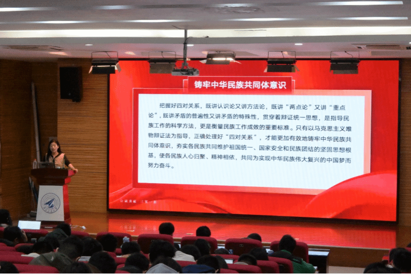 邀请马克思主义学院赵海霞教授,为全体学工干部、学生班、团干部,团委和学生会干部带来了一场题为“铸牢中华民族共同体意识”的专题讲座。讲座由学工主管程姣姣主持,于八、九院报告厅顺利开展。