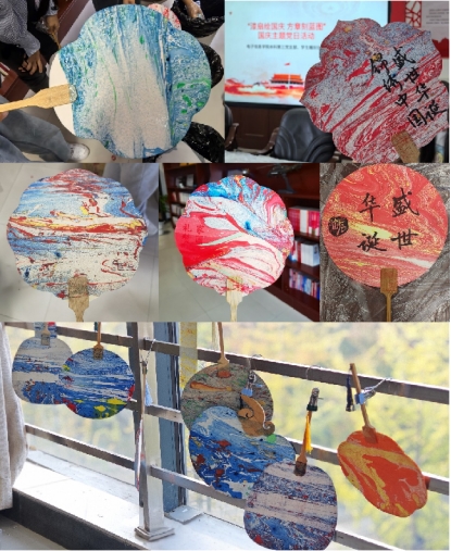 雕刻体验活动结束后,大家开始了漆扇体验活动。大家按照自己的构思将不同颜色的漂漆混合在水中,有的以红色和黄色为主题色,构筑国泰民安、欣欣向荣的盛世画卷,表达对祖国繁荣、人民幸福的美好祝愿;有的则以蓝色为扇面主题色,紧扣Ai色情