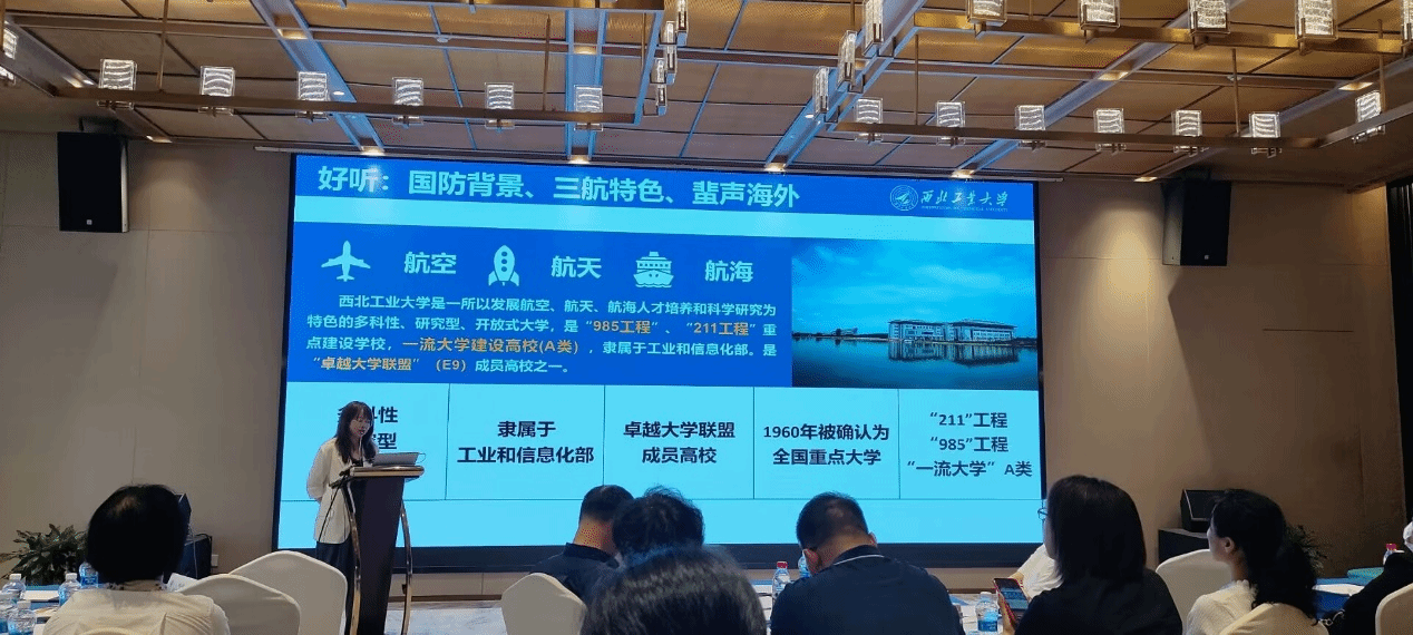 上午8点30分,宣讲会在酒店四楼会议中心举行,姚远老师首先为参加宣讲活动的家长们播放了西北工业大学宣传片,对西北工业大学的悠久历史、学科优势、科研实力、国际合作、培养方式和招生政策等方面进行了全方位的介绍。接着,航海学院孙华强书记,航空学院万方义副院长、材料学院王永欣副院长、玛丽女王工程学院程茵副书记分别围绕学院的发展历史、学科优势、人才培养、就业升学等方面进行了结合学院特色的针对性介绍。