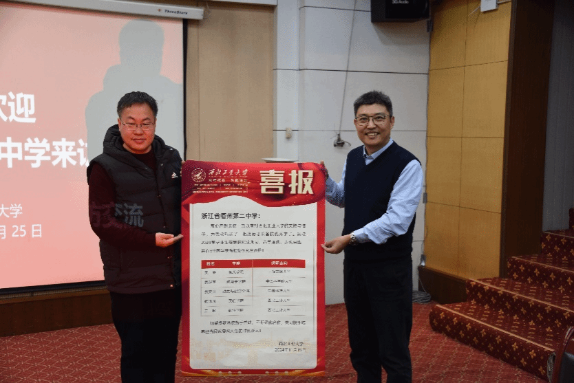 输送高素质生源表达了诚挚感谢。报告结束后,王克勤向黄德聪赠送喜报,祝贺衢州二中生源学生在2024届的保研佳绩。