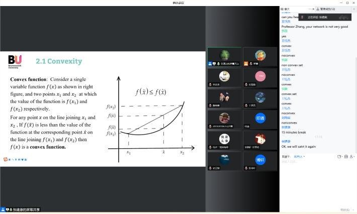 万开方老师担任助教老师。课程重点讲授了启发式搜索及进化计算领域的基本概念和前沿方法,主要涵盖最优化问题的基本概念,基本局部搜索方法及变形,基本遗传算法及其性质,蚁群算法,分布估计算法,多目标进化算法及本领域最新进展情况等内容。Qingfu Zhang教授深入浅出的讲解让同学们受益匪浅,课间休息时,同学们积极向老师提出问题,老师也很有耐心地一一解释,并且在课堂的最后设置了练习环节,帮助同学们更好地理解和掌握计算方法。