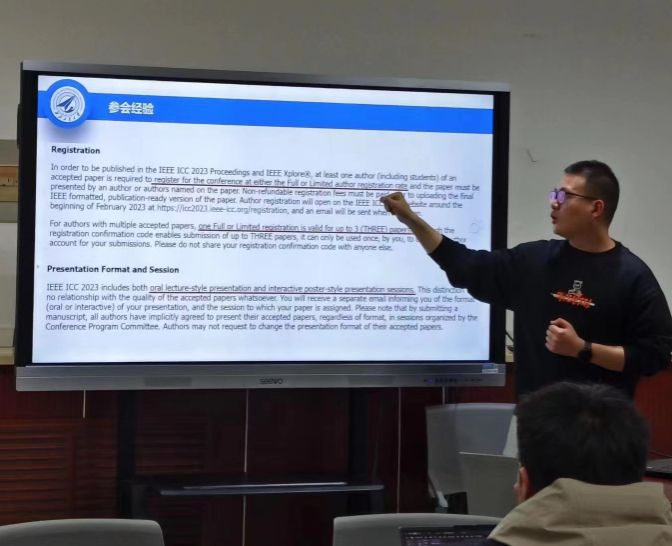 王琛介绍了在空地协同边缘计算网络中的能耗优化问题的研究,所提出的联合优化算法在确保网络中任务处理时延的同时,显著降低了整个网络的能耗。此外,他还分享了自己在国际交流中获得的收获和启示,鼓励同学们勇于尝试和探索。